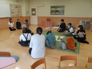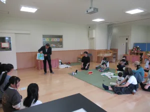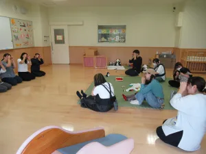 恒例となりましたが、今回は、表現力スキルアップ講座の5名の学生に手遊びと絵本の読み聞かせをしてもらい、親子で楽しんでもらいました。