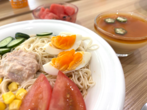 《メニュー》なつやさいそうめん・ひやしちゃわんむし・スイカ