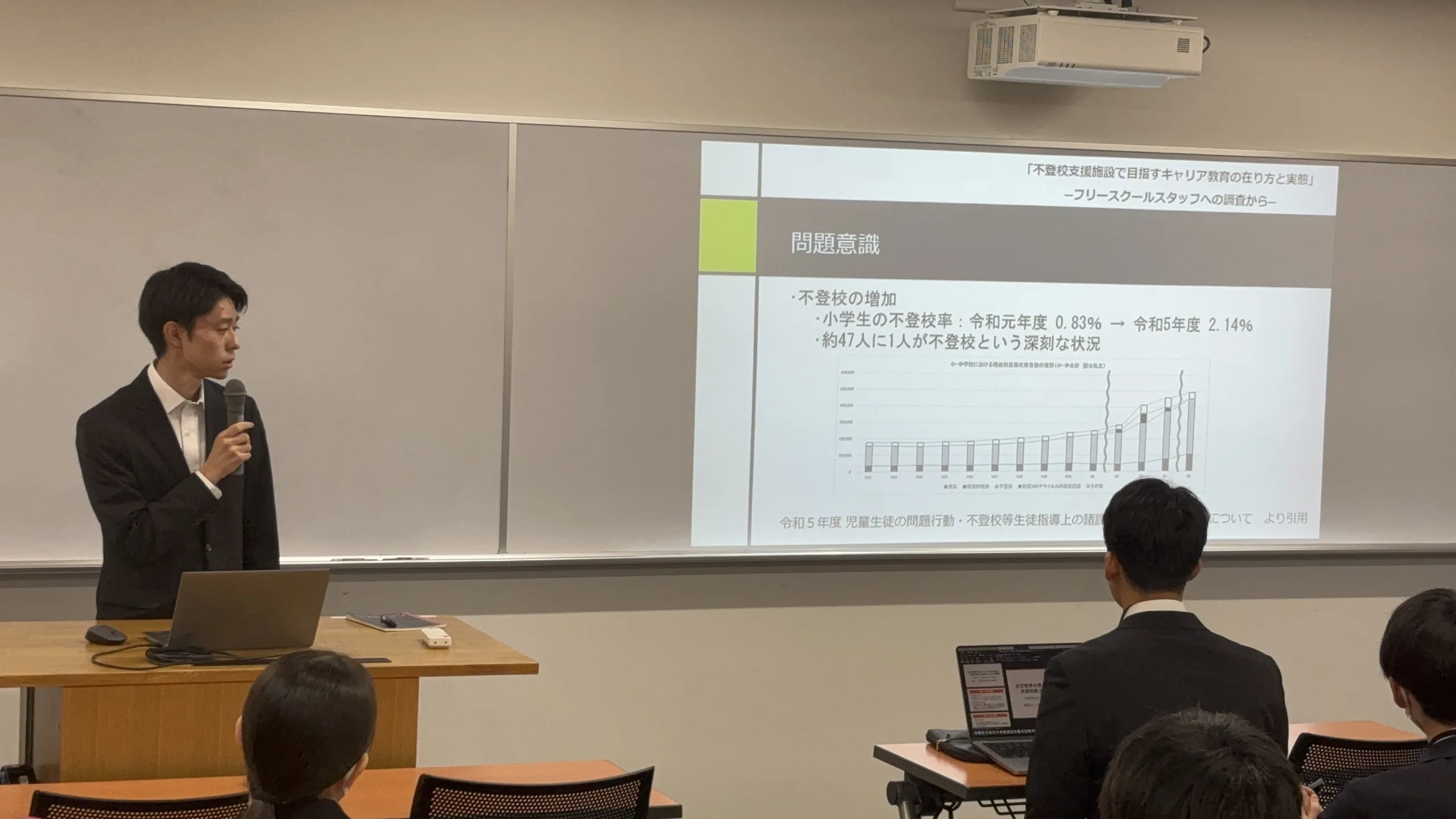 11月1日(土)、2日(日)の2日間、北海道特別支援教育学会が北海道教育大学札幌校で行われ、学生よる卒業研究発表会で本学からこども発達学科4年の舘盛友輔さんと山﨑美紅さんが自身の研究について発表しました。舘盛さんは「不登校支援施設で目指すキャリア教育の在り方と実態」を、山崎さんは「人的環境のユニバーサルデザインにおける教師の意識と実践」を立派に発表し、参加者は熱心に耳を傾けながら盛んに質問するなど、討議を深めていました。  (文責:村田)