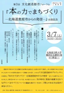 【3月7日(土)】「第3回文化創造都市フォーラム~『本の力でまちづくり 北海道恵庭市からの発信』出版記念~」を開催します