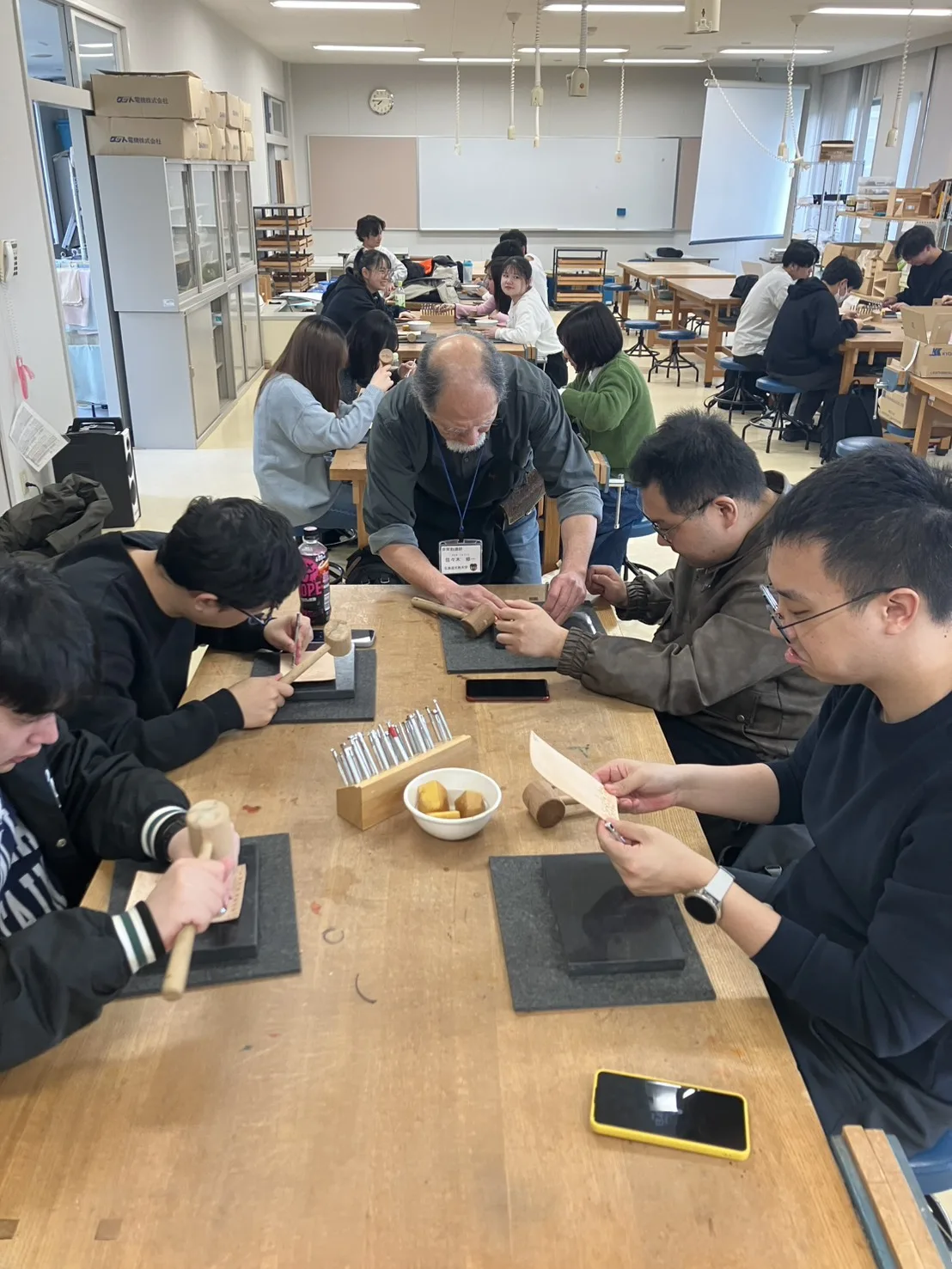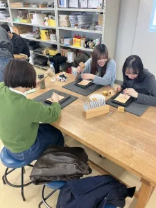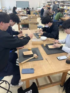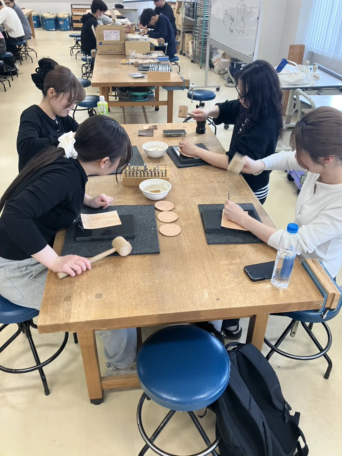 実は、実際に講義の中で革細工に触れるのは初めてで、みなさんとても楽しく活動に取り組んでいます。