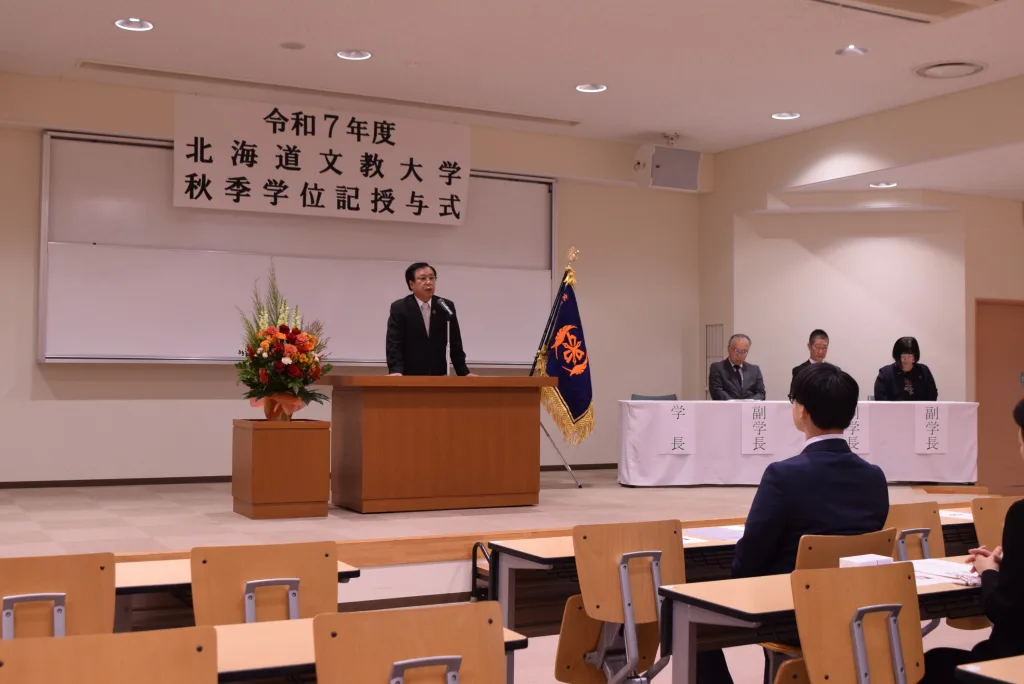 9月25日、本学大講堂において、令和7年度北海道文教大学秋季学位記授与式を挙行しました。
